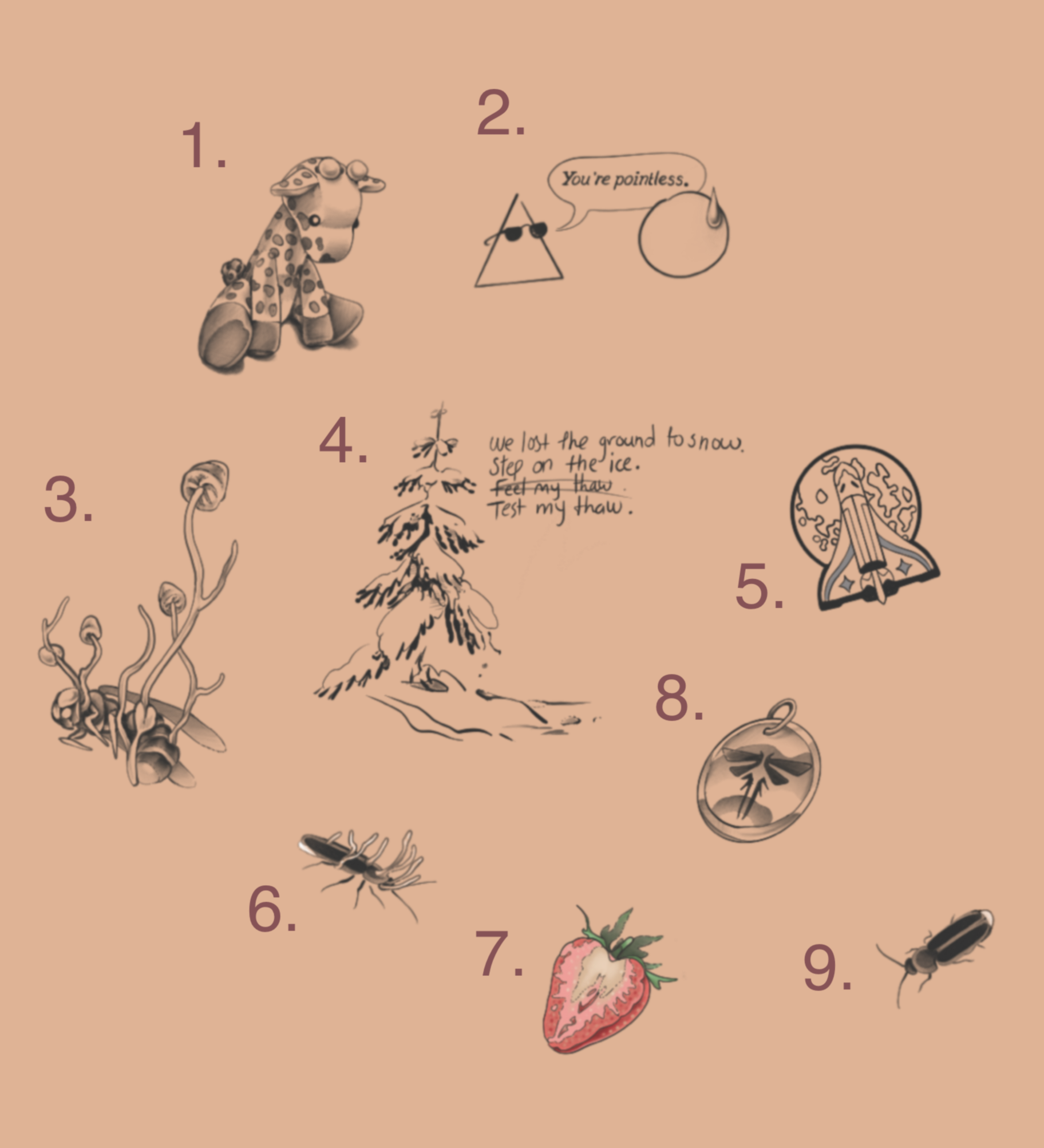 I make sheets of tiny tattoos on my spare time that are repeatable designs. These tattoos can end up on lots of different people; maybe you’ll meet your tattoo twin one day!